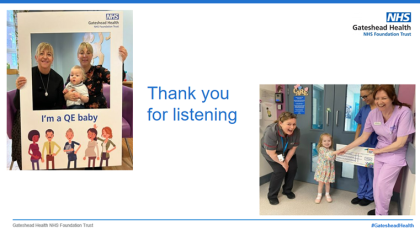 • Karen Parker (Associate Director of Midwifery/SCBU) and Claire Cameron (Matron for Acute, Maternity Services), Gateshead Health NHS Foundation Trust shared their work ‘You said, we did – Gateshead and Beyond’. This gave an overview of how the Trust have attained year on year positive scores on the CQC maternity survey and the collaboration across the system to put women and their families first.