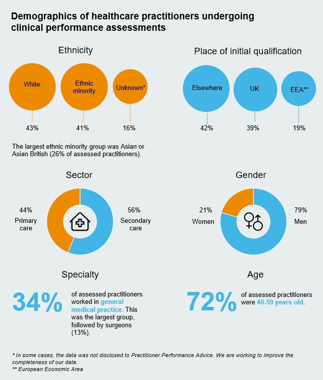 Demographics of healthcare practitioners undergoing clinical performance assessments